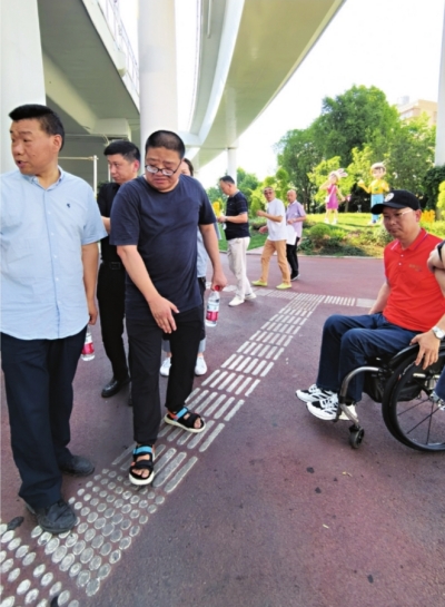 米振坤受邀实地“体检”家门口的盲道。