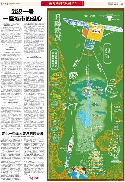 “珞珈三号”科学试验卫星02星(“武汉一号”卫星)由武汉大学报批立项研制,重345公斤,采用560公里高太阳同步轨道,旨在用高性价比小卫星解决无控制点高精度定位的核心技术问题。