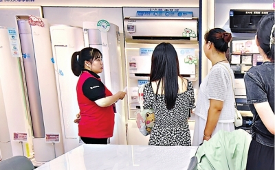 5月22日上午,李奶奶和王爷爷来到离家一站路的京东MALL家电卖场,他们想换掉家里已经用了十几年的老旧空调。以前,添置家电的事夫妻俩大都交给儿子儿媳在线上购买,这次,听说线下实体店有优惠,就过来看看。智能、操作简便是王奶奶对新空调的最大诉求,“越简单越好”。下午,林先生和林女士来到苏宁易购,直奔格力空调门店,咨询“以旧换新”活动,夫妻俩从店员那里得知,叠加各项优惠之外,自家的旧空调还可以抵450元。林先生家里的空调也买了近10年了,是定频的,现在也还能使用,置换并不是刚需,但他们希望能借此机会换台更智能、更节能的变频空调。