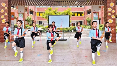 学校还广辟社会空间资源,为课后服务加持力量。用好社区节庆活动的展示空间,丰富社团的展演平台;开辟学校网上展示空间,让学生个性发展成果被更多人“看见”;积极拓展体艺培训机构平台,让在社团习得的才艺提升多一种可能;动员学生及其家长参与各种竞赛平台,让学生明确在课后服务社团活动中须努力的方向和存在的能力差距,激励成长。