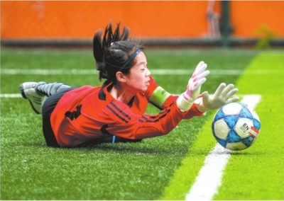 市青少年运动会女子足球比赛。 喻志勇 摄