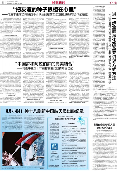 神舟十八号航天员叶光富、李聪、李广苏密切协同,于28日完成首次出舱活动,用时约8.5小时,刷新了中国航天员单次出舱活动时间纪录。