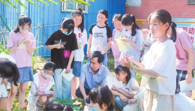 如今,这片小菜园生机盎然、满眼青绿。竹叶菜、韭菜拔节生长,脆嫩清甜的黄瓜挂满藤架,绿色的辣椒、紫色的茄子长势喜人。28日,在老师的带领下,同学们走进小菜园,看一看、摸一摸,认识各种蔬菜的特点,亲身感受蔬菜的生长过程和菜园的变化。老师们也变身讲解员,耐心地回答着孩子们的各种问题。生活即教育,小小菜园也成了劳动教育的课堂。