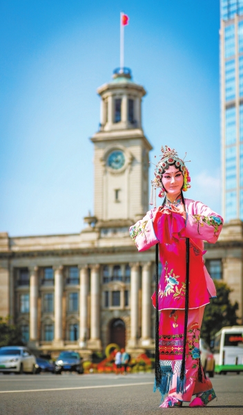 汉剧演员在江汉关前拍摄《剧在武汉》。 城市摄影队陈亮 摄