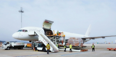 花湖机场工作人员正在装载货物。通讯员何旭峰 摄