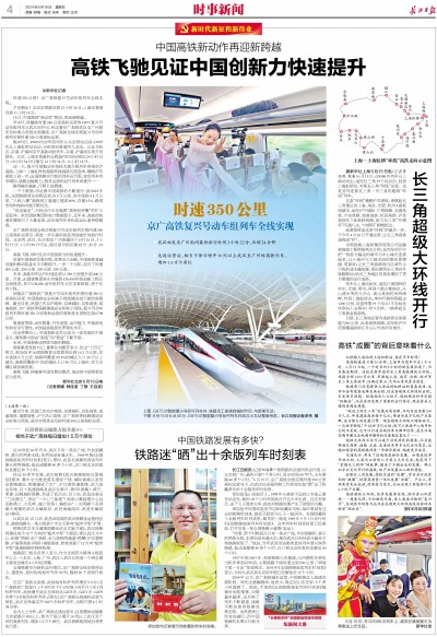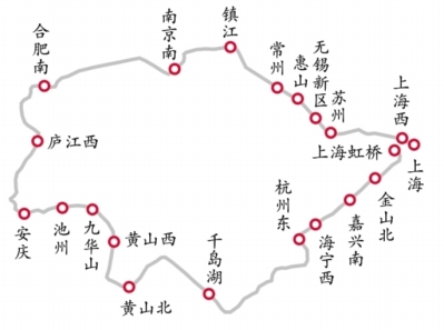 这条“环线”横跨沪苏浙皖,串联起长三角地区的上海、南京、合肥、杭州4座枢纽城市,途经沪宁城际、宁蓉铁路、京港高铁、宁安铁路、池黄高铁、杭昌高铁、沪昆高铁共7条高铁线路,助力长三角“外循环”四通八达,“内循环”顺畅抵达。