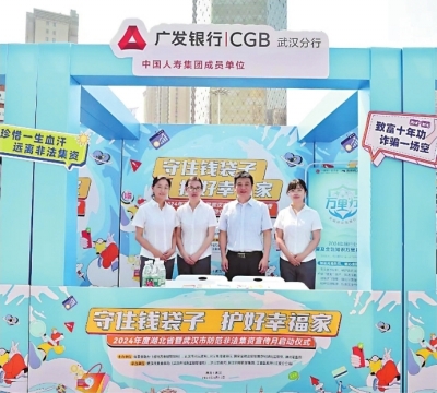 广发银行武汉分行始终践行“以客户为中心”的服务理念,努力探索金融消费者权益保护工作体系建设,积极开展防范非法集资宣传教育活动,为进一步构建和谐金融环境贡献力量。