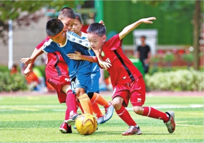 6月26日上午9时30分,一场酣畅淋漓的足球比赛正在墨水湖小学操场上激烈进行。