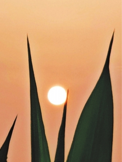 华中农业大学试验田旁,夕阳斜挂,天空被染成橙红渐变色。植物的绿叶尖锐如剑,叶脉清晰可见。草木葱茏,随风摇曳,不时响起几声清脆的鸟鸣。鸟儿就像大自然的乐师,用“歌声”为宁静的傍晚增添了几分生机。