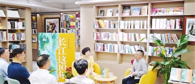 市民围坐在星辰·春风十里书吧,聆听作家李鲁平分享他的新书《长江这10年》。