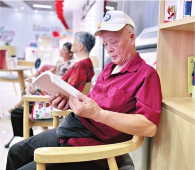 二楼的儿童活动区里,7岁的国宝和5岁的小哲正并排坐着翻看绘本,除了近百本儿童读物,这里还提供了适合儿童的棋类玩具。小哲的奶奶李女士在一旁休息,“纳凉点里有小伙伴,孩子来这里比在家更高兴”。