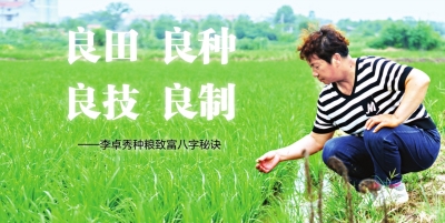 梳理这几年的种粮经历,李卓秀掰起手指头细算账,坦陈种粮致富八字秘诀:良田、良种、良技、良制。