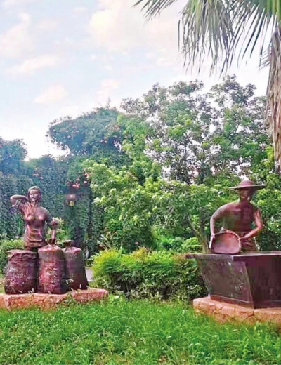 在蔡甸区侏儒山街道阳湾村,一组雕塑掩映在绿树丛中,颇显农趣。据介绍,阳湾村是“侏儒山战役”旧址,2020年10月被列为全国首批“红色美丽村庄”试点村,通过数年建设,阳湾村已经成为远近闻名的红色旅游景区。魏植成 摄