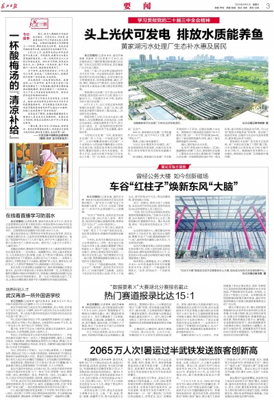 长江日报讯(记者汪文汉 通讯员姚德春 代毅婷 实习生贾雯)7月30日,武汉城投武汉三镇控股集团黄家湖污水处理厂分布式光伏项目并网发电,预计覆盖厂区27%电力需求。