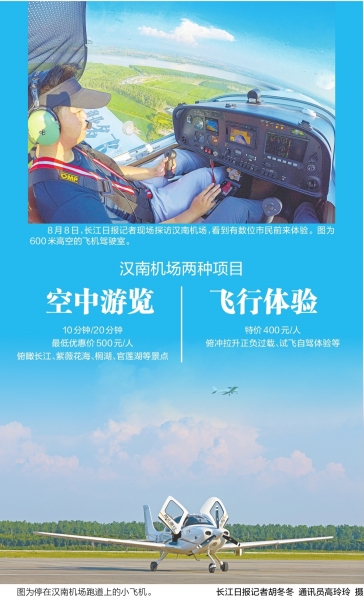 “3,2,1,起飞!”3分钟,飞机直冲600米高空,浩浩长江尽收眼底。8月9日,长江日报记者从武汉经开区获悉,即日起,市民只需在“武汉汉南机场”小程序预约,就可乘坐小飞机尽享自由翱翔的极致快感。