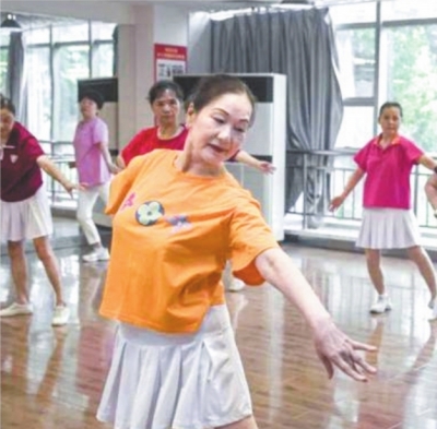盛夏的一个上午,在百步亭社区党员群众服务中心练舞室内,极具节奏感的音乐响起,71岁的国家一级社会体育指导员张维带领姐妹们练起了健身操。