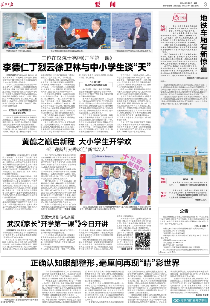三位在汉院士开讲《开学第一课》