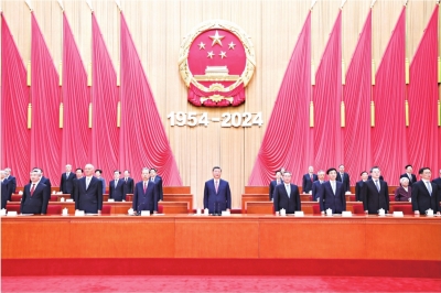 大会在雄壮的国歌声中开始。习近平发表了重要讲话。他指出,人民代表大会制度是中国共产党领导中国人民艰辛探索长期奋斗的成果,是从中国土壤中生长起来的全新政治制度,是人类政治制度史上的伟大创造。人民代表大会制度的建立,意味着中国政治从根本上实现了由少数人掌握政权、绝大多数人受压迫被剥削到中国共产党领导、人民当家作主的伟大跨越,实现了中国政治制度的伟大变革。