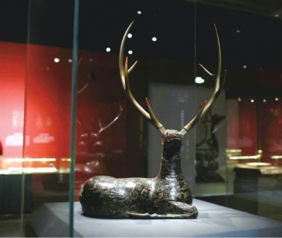昂首伫立的青铜鹿角立鹤,作为镇墓神兽,因可爱的外形成为高人气“萌物”。据介绍,楚人有“尚巫”的传统,这些古灵精怪的器物用于供奉神灵,展示了楚人非凡的想象力。