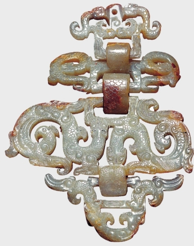 龙凤纹四节玉佩,战国,1978年随县擂鼓墩曾侯乙墓出土。