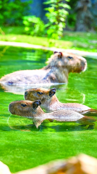 今年春夏,逛武汉动物园的游客们惊喜发现,这里不仅是一座面貌一新的现代动物园、湿地上的美丽动物园,更变成了温馨可爱的“动物宝宝乐园”:在亚洲区树上王国,两只通体毛发金黄的猴宝宝机灵可爱,它们时而依偎在猴妈妈的怀里吸吮乳汁,时而独自在树木间攀爬探险;在美洲区亚马孙雨林,一对水豚双胞胎宝宝眯着眼睛,慢悠悠地咀嚼青草,惹来游客嬉笑“不愧是以‘淡定’出圈的网红动物,生来就这么松弛”;在非洲区,沿栈道一路能看到环尾狐猴、阿拉伯狒狒、黑白疣猴、细尾獴的幼崽跟着爸爸妈妈们玩耍;在湿地鸟区,环湖漫步,黑天鹅、赤麻鸭家族成群“带娃”的温馨画面,更是随处可见……