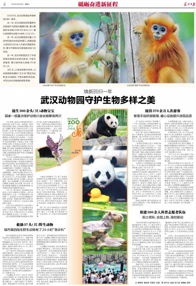 “作为公立动物园,武汉动物园以保护野生动物、共筑绿色家园为己任,是展示生物多样性的窗口,更是野生动物保护事业的坚实阵地。”武汉动物园负责人余钢说,焕新归来一周年以来,持续做好园内野生动物的保育工作被摆在了首要位置。