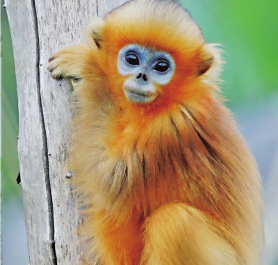 目前,武汉动物园共有川金丝猴10只,形成良好种群。2只川金丝猴宝宝来自两个不同的家族,分别是母猴“妮妮”和“丝丝”所生,目前已经半岁,生长情况良好,圆眼睛、金毛发,十分可爱。