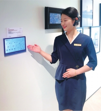 李伟说,他刚买了6号楼一套143平方米的四室两厅,主要是看中这里的智能系统。这套系统能通过手机远程遥控,夏天回家前打开空调,冬天提前开地暖,还有新风系统等设备,“晚上不想下床,也能语音遥控关灯和窗帘,太方便了”。
