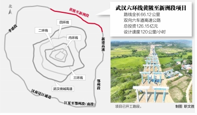 武汉六环线黄陂至新洲段项目起于孝感市孝南区祠堂湾与武汉市黄陂区李集街肖家湾的界河,止于新洲区邾城西侧的刘集,与新港高速双柳长江大桥及接线工程对接。路线全长66.12公里,按照双向六车道高速公路标准建设,总投资126.15亿元,设计速度为120公里/小时,预计2027年年底建成通车。