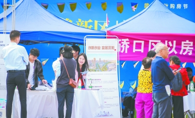 国庆假期,市民在武汉金秋购房节活动现场咨询。