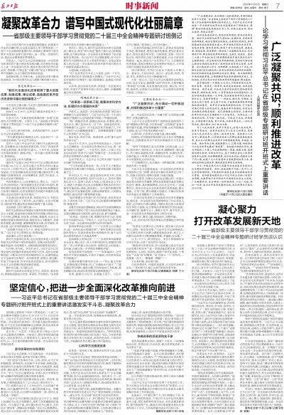 “习近平总书记的重要讲话,具有很强的政治性、理论性、针对性、指导性,为我们上了一堂生动的理论大课、实践大课、思想大课。”青海省委副书记、省长吴晓军说,在以习近平同志为核心的党中央坚强领导下,新时代全面深化改革取得一系列重大成果,成为我国改革开放历史进程中最壮丽的篇章之一,我们深有感触。青海牢记总书记赋予的“三个最大”省情定位和“三个更加重要”战略地位,推动生态建设从“管理”向“治理”转变,在推进青藏高原生态保护和高质量发展上迈出新步伐。新征程上,我们要坚持向改革要动力,以改革激活力、聚合力,打造具有国家代表性和世界影响力的自然保护地典范,坚定不移当好“中华水塔”守护人。