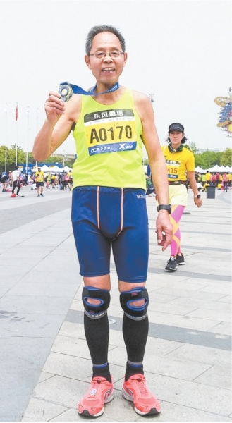 “安全完赛!运动手表显示我5小时21分48秒跑了42.48公里。”11月10日,81岁的北京航空航天大学退休教授潘仲英顺利跑完合肥马拉松后给长江日报记者发来信息。这是他完赛的第74场全程马拉松赛。他说:“家乡武汉的马拉松赛道最美,我希望能够成为武汉马拉松的永久跑者。”