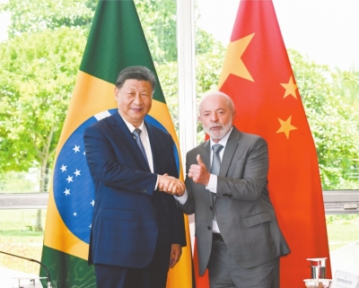 四是休戚与共,为构建人类命运共同体作出中巴贡献。中巴作为发展中大国,要带头共商共议,推动“同球共济”,合力应对关乎人类前途命运的全球性挑战。加强在绿色转型、可持续发展、应对气候变化、人工智能治理等领域合作。中方愿支持巴西办好《联合国气候变化框架公约》第三十次缔约方大会。