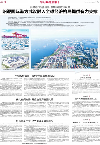 长江新区紧抓国家战略机遇,规划发展新图景,努力将阳逻港自身优势转化为发展胜势,推动港口、产业、城市深度融合,进一步提升区域经济活力,成为长江中上游地区的重要增长极。