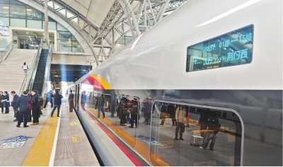 27日13时15分,荆荆高铁试运行列车G6857次从汉口站始发。