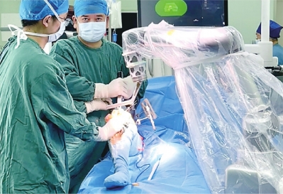 武汉市第四医院运用国产关节置换手术机器人完成全膝关节置换手术。
