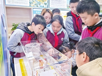 “这边是氢能火箭,电解装置将水电解转化为氢气和氧气,点火后氢气燃烧瞬间产生冲击力,将小火箭发射升空。”在氢能火箭科普演示装置前,科普志愿者向同学们详细介绍了模型的操作原理。