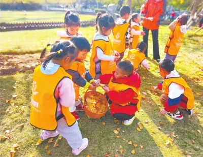香江苑小公园的树林变成了一片金色的童话天地。在老师的带领下,小朋友们兴高采烈地穿梭其间,小心翼翼地拾起片片金黄的银杏叶,轻轻放入篮子里。阳光斑驳地穿透枝叶,映照在孩子们纯真的笑脸上。欢声笑语在林间回荡,他们不仅沉醉于大自然的美景,还在劳动中感受着收获的喜悦。