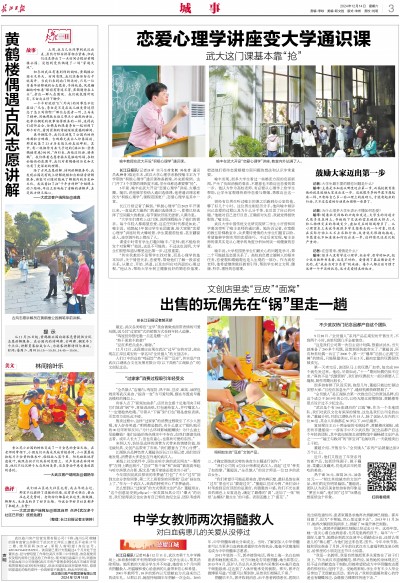 今年国庆回武汉探亲的李梦涵“打包”了不少“过早”回到北京分享给同事,第二天上班看到有同事把‘豆皮’挂在包上了。“作为一个武汉人,我真的特别开心!”李梦涵说。