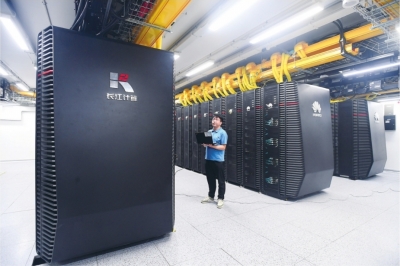 武汉人工智能计算中心,工程人员正在调试设备。