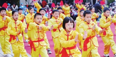 “内外兼修、文武双全是学校对学生的培养目标,所以我身体力行,先带头做好示范,才能点燃老师们,老师都练起来了,就能更好带动每一个学生。”李娜告诉记者,最开始,全校师生一起练五步拳,后来学校将《三字经》、戏曲、功夫扇融入武术,大家习武兴趣越来越浓。今年,不少学生说想在学校学打咏春拳,于是,李娜和老师们就暑假里提前学咏春,开学后和武术老师一起教给学生。