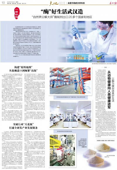 “酶和饲料原料的关系,好比一把钥匙打开了一把锁。1吨饲料,只要加入200克的‘酶制剂’,便可提升饲料营养价值、促进动物吸收,比使用抗生素更安全,它是一种天然催化剂。”在武汉光谷高农生物园,有这样一家农科创生物企业,它专注于微生物及其代谢产物的研发和制造,将其经过纯化提取,发酵、干燥等工艺,制成酶制剂,应用在畜牧业、工业、人类健康等多个领域,年产能达5万吨,规模位居全国前三,饲料酶产品在国内市场综合占有率达20%以上,是国内酶制剂领域“隐形冠军”。