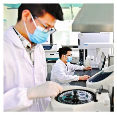 富邦科技旗下企业的科技人员在土壤检测实验室对土壤进行检测。