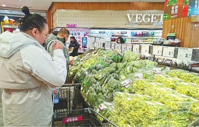 永旺梦乐城金桥店内,市民选购“霜打菜”。