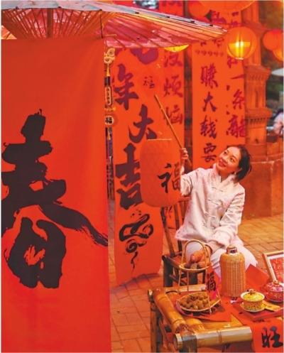 解放公园“上新”春节布置,姑娘手举灯笼喜笑颜开。