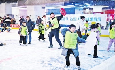 12月21日,武汉荟聚中心荟趣冰上运动中心人声鼎沸,热闹非凡。作为2025武汉大众冰雪季的配套亲子活动之一的“冰临城下”打雪仗活动在此举行。本次活动包含冰雪进校园成果展示、花样滑冰表演以及“冰临城下”打雪仗三个环节,吸引了来自武汉市内的百余组家庭的热情参与。