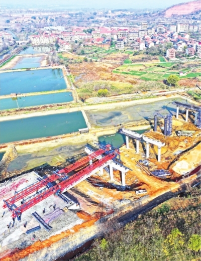 长江日报讯(记者高喜明 通讯员王可 商少莹)12月17日,驾虹村大桥首榀预制箱梁成功架设。12月18日,塘塆村1号桥首片箱梁精准落位。进入12月,鄂州机场高速二期项目建设按下了加速键。