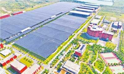 北湖污水处理厂上空架满光伏板,从污水处理池上空“抓取”电能,减少碳排放。