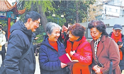 走在校园里,校友们得知那位精神矍铄的老人就是媒体报道过的钱治光后,抢着跟她握手,纷纷向她问好、致敬。在“辟门吁俊”的牌坊前,有30多名校友和她合影留念。