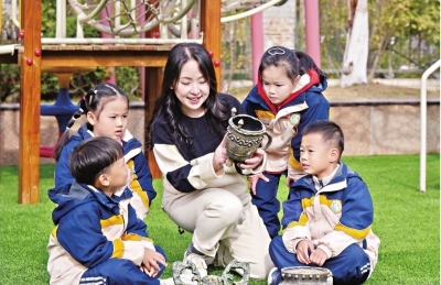 武汉盘龙城经济开发区中心幼儿园自2013年9月建成开园,是盘龙城地区唯一公办园。2020年9月我接任园长一职,怎样让这所市级示范性幼儿园特色化发展,是我一直在思考的问题。秉承“阳光陪伴,七彩童年”的办园理念,我们不断创新,丰富办园特色,也在深耕践行中描摹新时代幼儿园的模样——“有爱、有趣、有自由、有进步”。伴随着爱的“四重奏”,即“相信、倾听、支持、成就”,让每一个孩子闪闪发光。